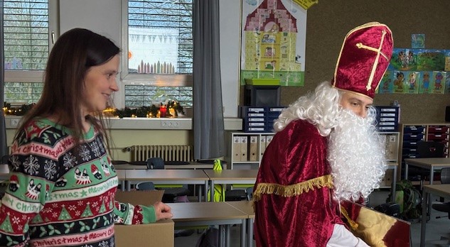 Weihnachtliche Aktivitäten auf der Hardt: Unser fleißiger Förderverein bot zusammen mit der OGS eine Station auf der Winterwerkstatt an, schickte den Nikolaus mit leckeren Stutenkerlen durch die Klassen und bot auf dem Nikolaustreff von „Gemeinsam Hardt“ HotDogs an und begleitete die „Tütenstraße“.